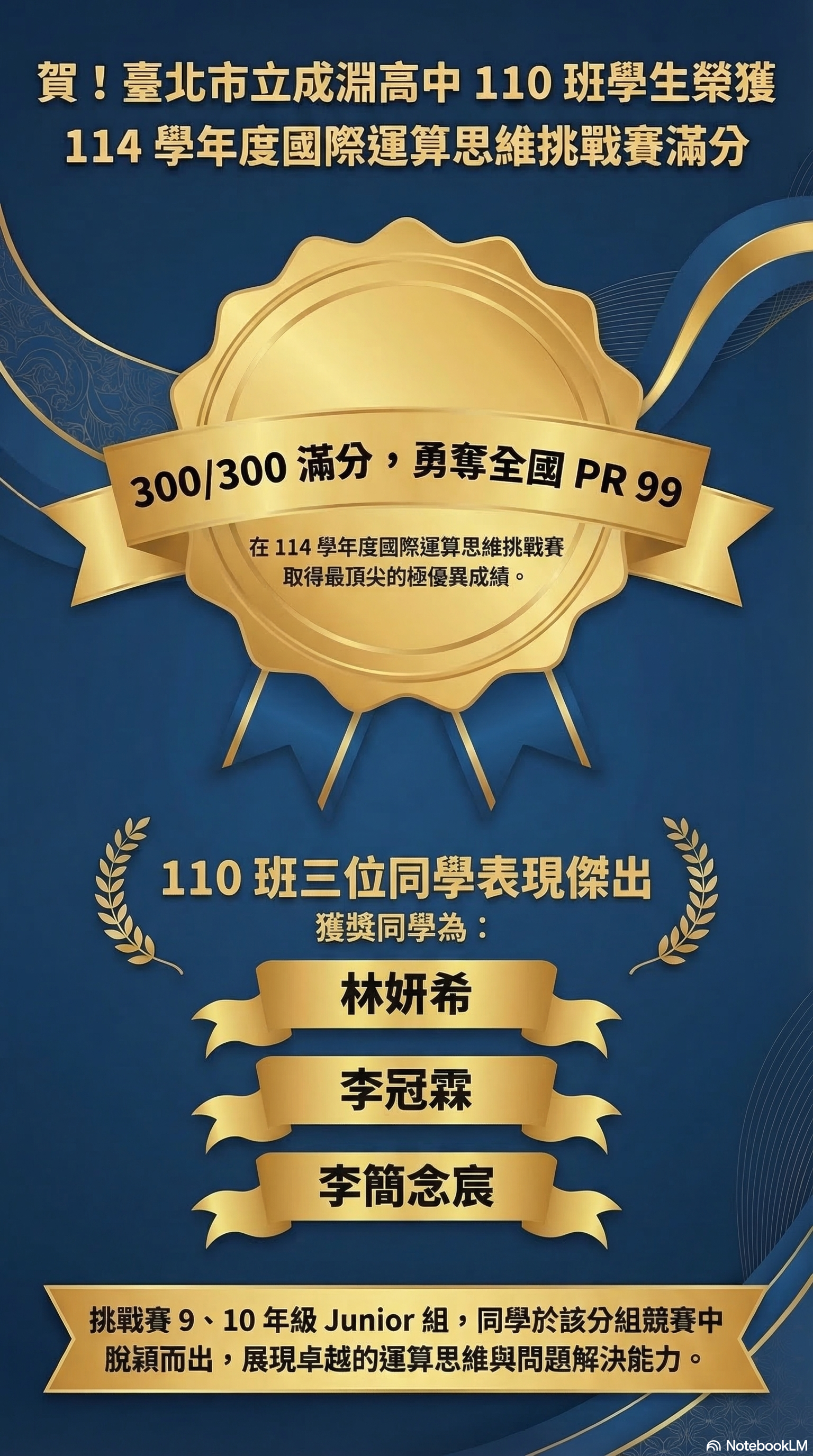 賀!114學年度國際運算思維挑戰賽三位同學滿分 成績優異