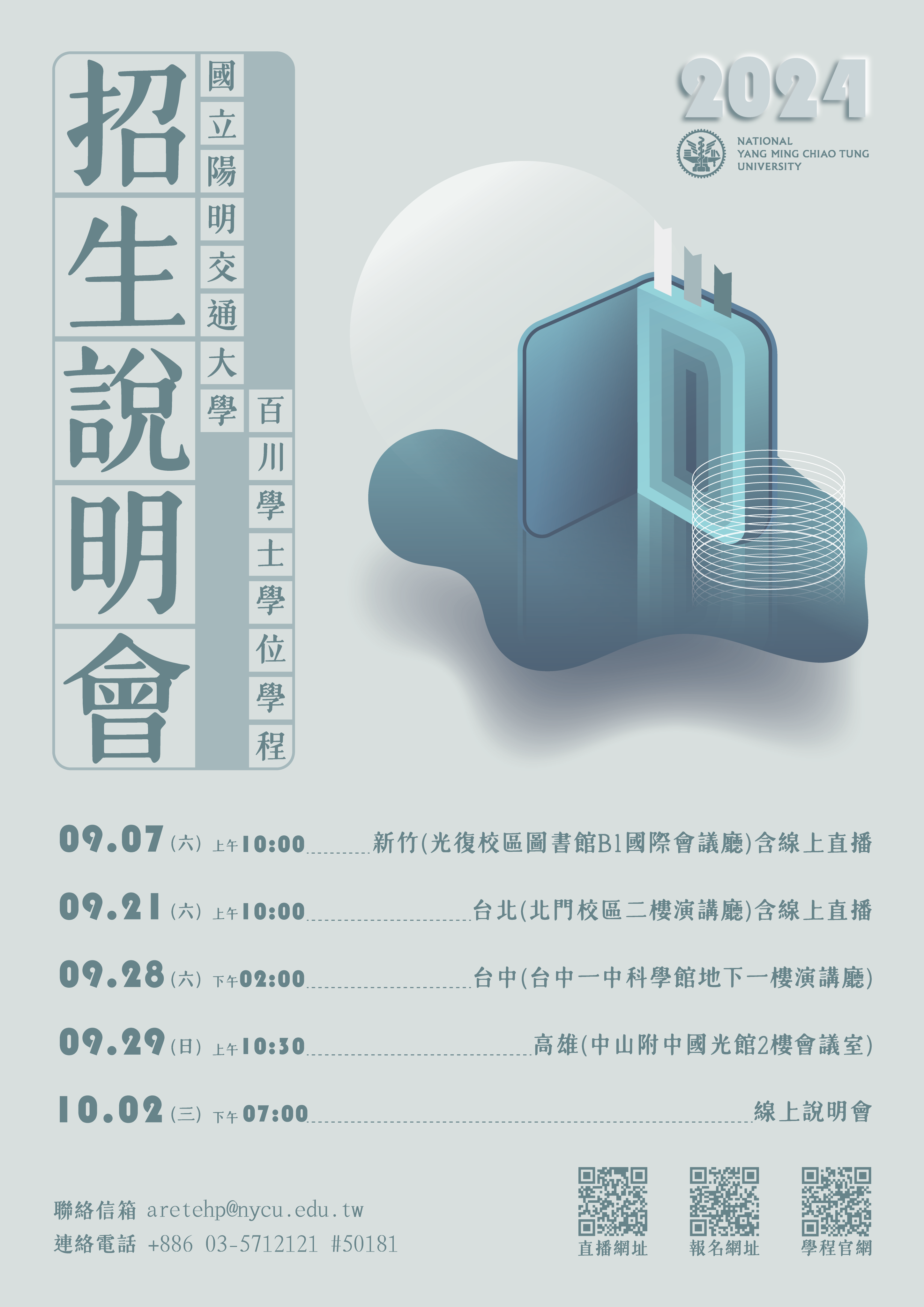 五、活動報名資訊請連結百川學程網站(網址:https://aretehp.nycu.edu.tw/)。