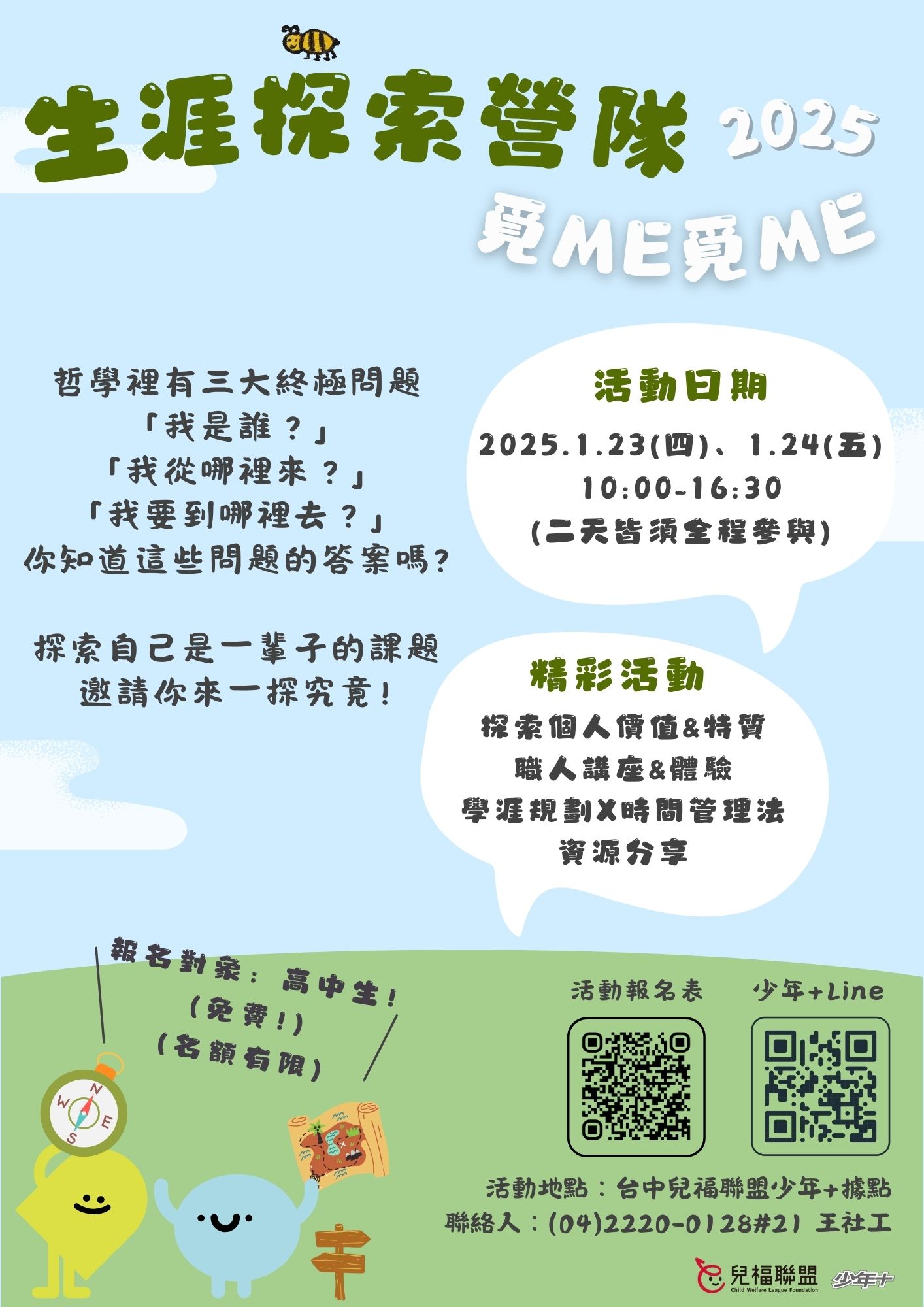 二、本期活動規劃「覓Me覓Me -生涯探索寒假營隊」,培養少年多樣化興趣、探索個人能力,及增加正向人際互動經驗。