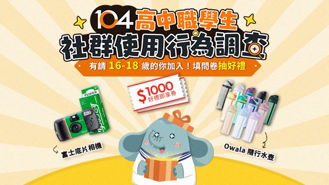 四、問卷獎勵:符合問卷調查條件並完整填寫者,即有機會獲 得:即享券$1,000元(十名)、 富士底片相機(五名) 與 Owala 隨行水壺(三名)