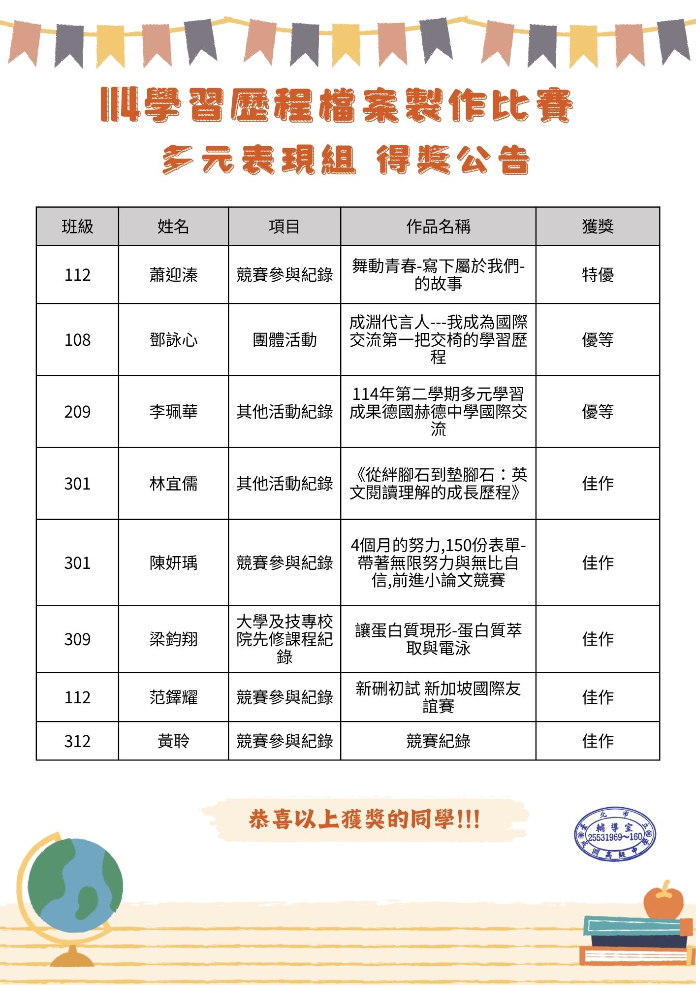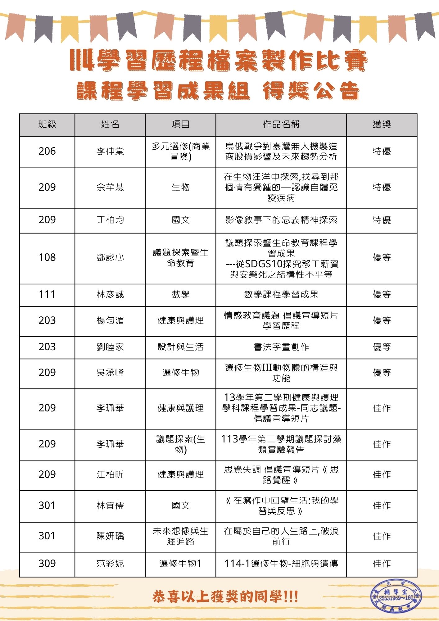 114-2學習歷程檔案比賽結果公告