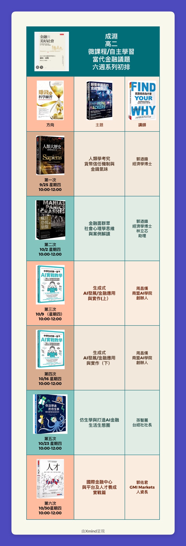 本次114-1週四3,4節「當代金融議題」微課程各場次因報名人數過少,取消辦理
